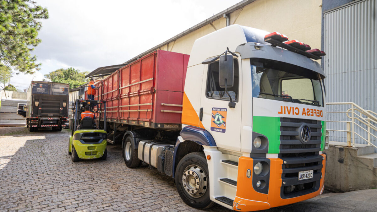 Paraná envia ajuda humanitária a MG. Caminhão leva colchões, kits de limpeza e higiene para vítimas das chuvas. Ação solidária visa amenizar perdas.