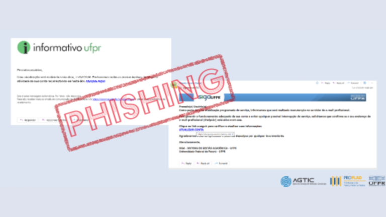 UFPR alerta sobre golpes de phishing que roubam dados por e-mails fraudulentos. Não clique em links suspeitos nem forneça informações. Denuncie!