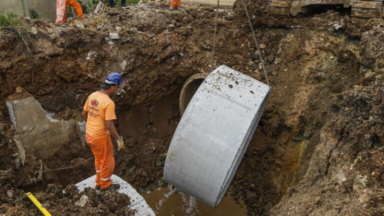Curitiba: Obras de drenagem na R. Vereador Toaldo Túlio (São Braz) de 04/03 a 19/04. Interdições parciais visam prevenir alagamentos e melhorar a infraestrutura.