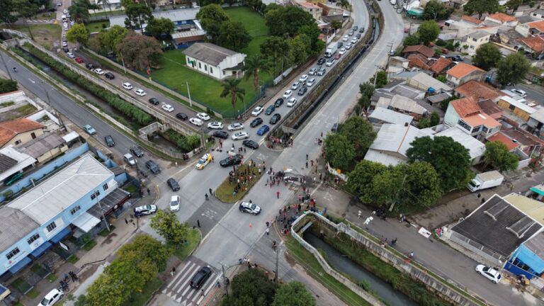 Curitiba sofre com alagamentos. Chuva intensa causa protesto no Lindóia e bloqueio de vias. População exige infraestrutura resiliente.