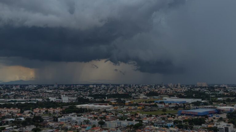 Chuva forte no PR: Curitiba e Sul do estado afetados por temporais. Previsão de mais instabilidade no domingo, com risco de tempestades intensas e calor.