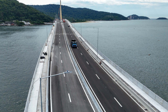 A estrutura da ponte, que se estende por mais de 1.240 metros, com quatro faixas de tráfego, ciclovia e acessos terrestres, totaliza aproximadamente 3 quilômetros. A obra, aguardada há décadas, representa um investimento de cerca de R$ 400 milhões.