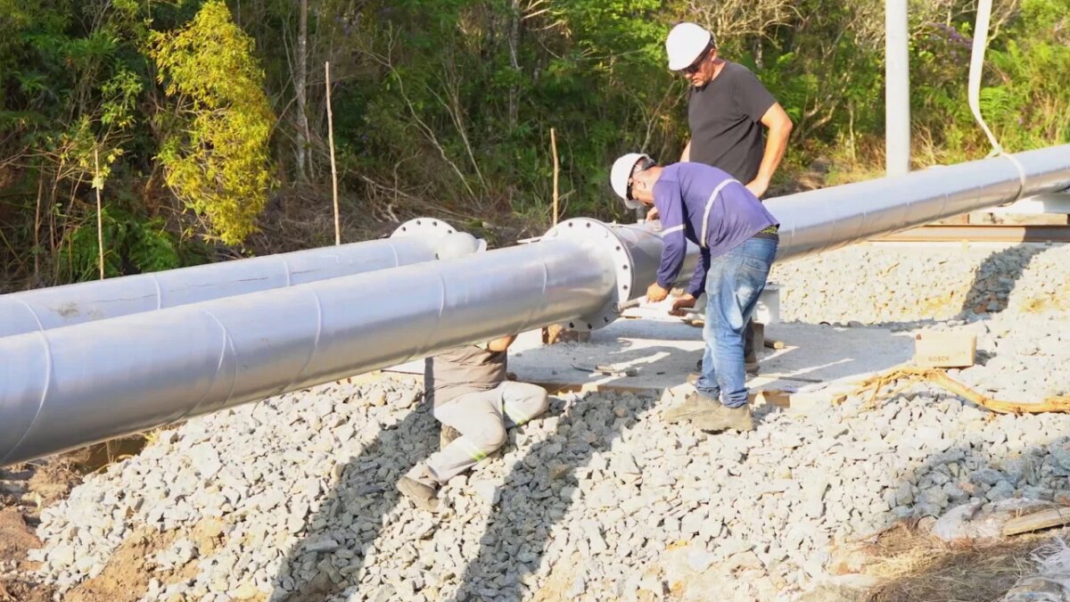 O investimento total na modernização dessas linhas de distribuição, cada uma com 400 milímetros de diâmetro, totaliza R$ 1,7 milhão. Uma das estratégias adotadas, devido à localização em áreas de menor urbanização, é a instalação da nova tubulação em pórticos de concreto e metal. Essa elevação, que pode chegar a 1,5 metro do solo, não só otimiza o processo de instalação, mas também confere maior segurança e acessibilidade para futuras manutenções.