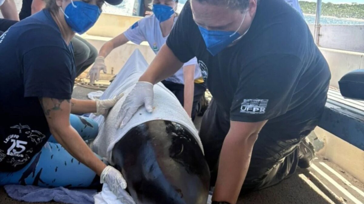 Um exemplar juvenil de Kogia sp., popularmente conhecido como cachalote pigmeu, foi encontrado em condição de encalhe e apresentando ferimentos na manhã desta quarta-feira (25) na região Oeste da Ilha do Mel, no litoral do Paraná. O resgate do animal, que possui hábitos oceânicos e raramente se aproxima da costa, foi acionado por populares que rapidamente contataram o Laboratório de Ecologia e Conservação (LEC) da Universidade Federal do Paraná (UFPR). A equipe especializada, responsável pela execução do Projeto de Monitoramento de Praias da Bacia de Santos (PMP-BS) no estado, atuou prontamente para prestar os primeiros socorros e iniciar os procedimentos de reabilitação.