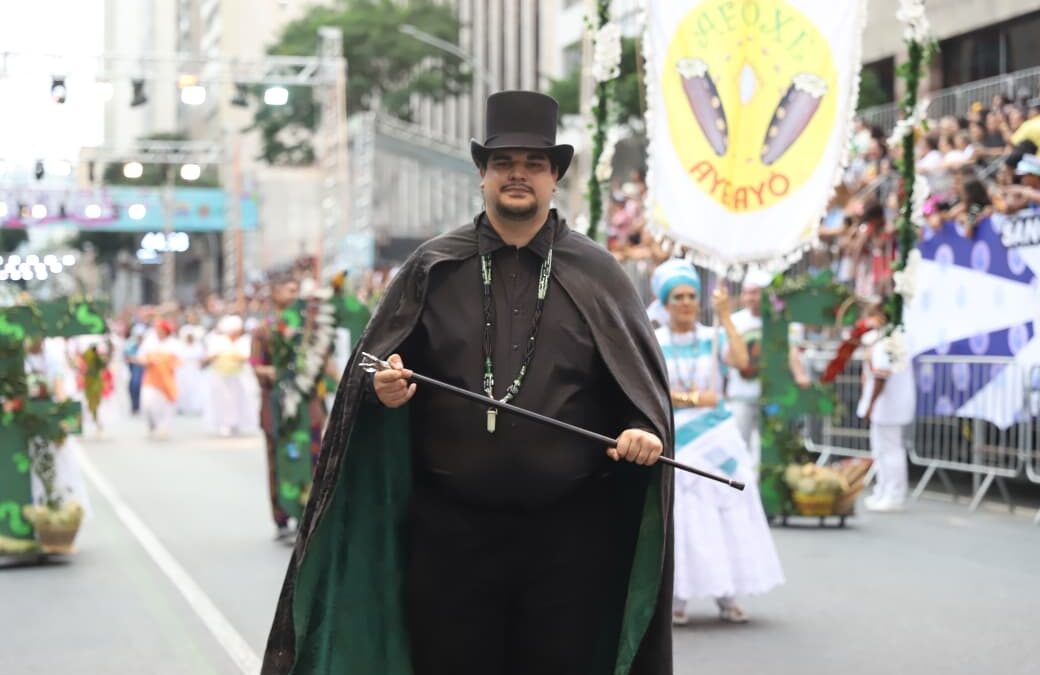 A jornada cultural começou no final da tarde, com o grupo Afoxé dando o tom da celebração por volta das 18h. Em seguida, a energia contagiante dos blocos Púrpura, Boêmios e Madames e Rancho das Flores tomou conta do centro da cidade, precedendo a entrada das agremiações oficiais.