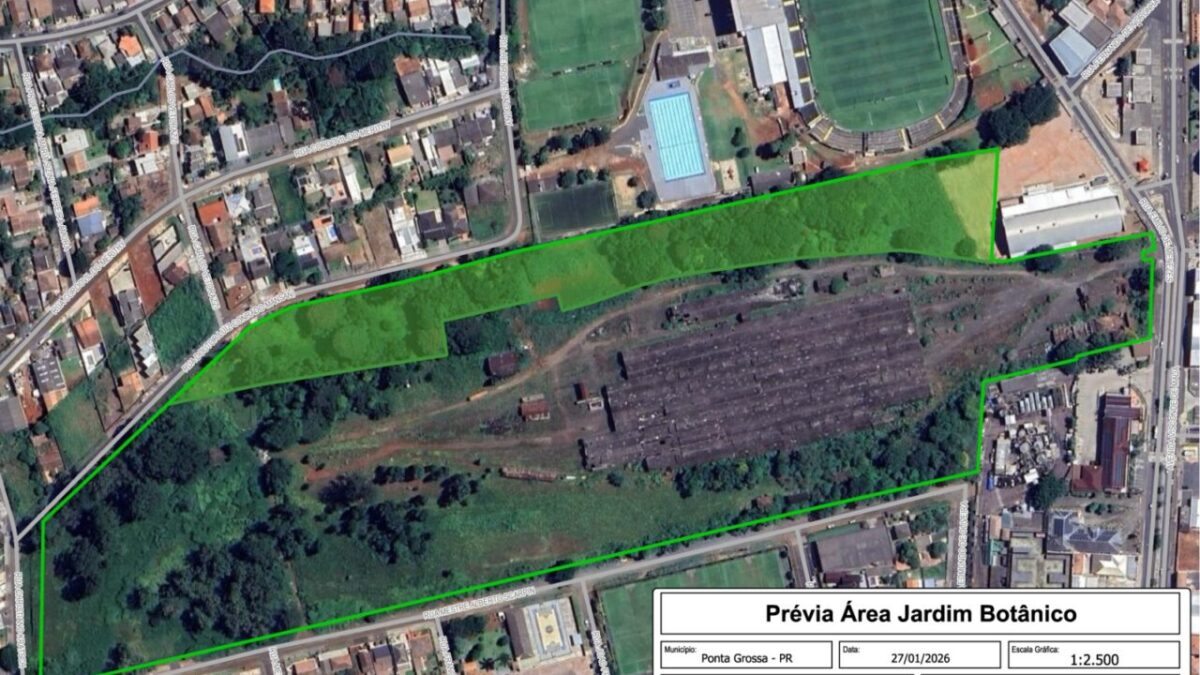 Ponta Grossa avança em seu plano de expansão de áreas verdes com a oficialização da cessão de um terreno de aproximadamente 20 mil metros quadrados, destinado à implantação do primeiro Jardim Botânico do município. Localizada em uma área estratégica, entre o Estádio Germano Krüger e o antigo complexo ferroviário no bairro de Oficinas, a iniciativa visa criar um novo polo de lazer, educação ambiental e pesquisa científica.