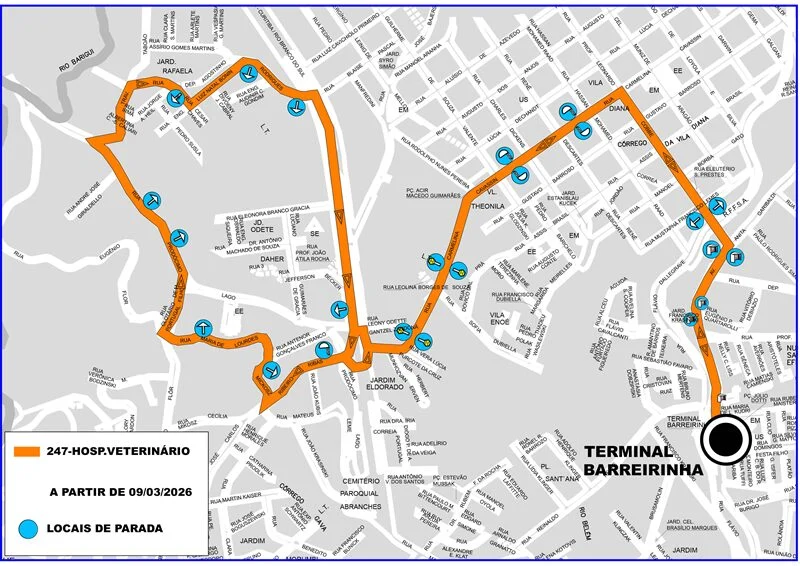 Uma nova rota de transporte público foi inaugurada em Curitiba nesta segunda-feira, 08 de março de 2026. A linha 247 – Hospital Veterinário visa otimizar o acesso a serviços de saúde animal na região, conectando o Terminal Barreirinha a pontos estratégicos da cidade. A expectativa é que a nova rota atenda a uma demanda crescente por transporte que facilite o deslocamento de tutores e profissionais da área.
