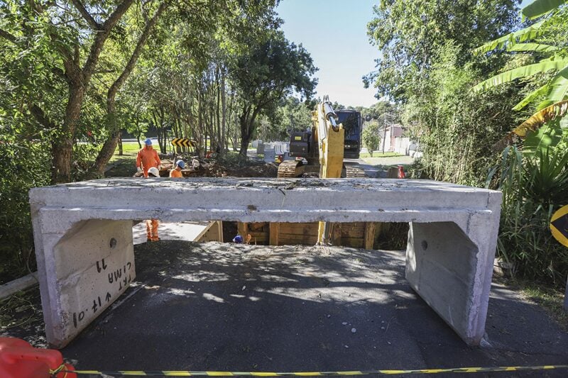 Uma antiga ponte de madeira sobre o Rio Belém, localizada na Rua Adolfo Henrique Klinger, no bairro Abranches, em Curitiba, está sendo substituída por uma moderna galeria em concreto. A intervenção, que visa aumentar a segurança e o conforto para motoristas e pedestres, também compreende melhorias no sistema de drenagem da área e a otimização do acesso ao Parque Papa Francisco.