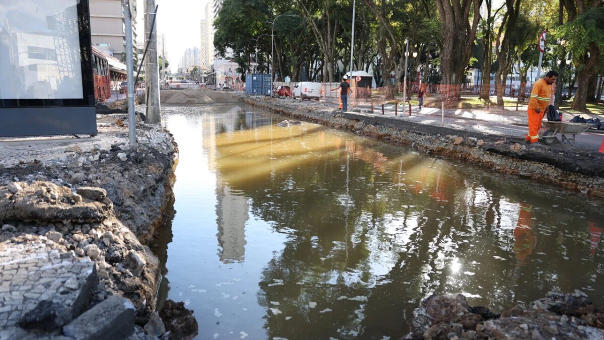 Um inesperado interrompimento nas obras do corredor BRT Leste-Oeste, na Avenida Sete de Setembro, em Curitiba, causou a formação de um grande volume de água próximo à Praça Eufrásio Correia. O incidente ocorreu devido ao rompimento de uma adutora durante os trabalhos de escavação, transformando temporariamente a paisagem urbana em um cenário aquático incomum.
