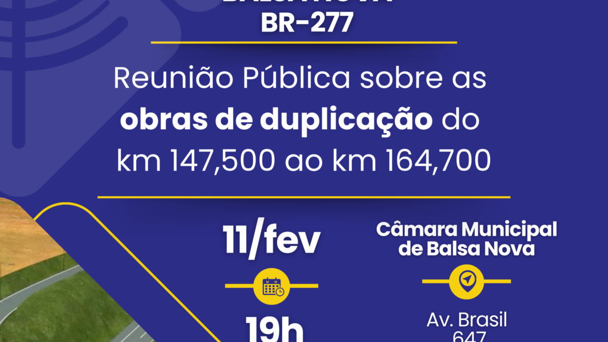 O evento está aberto a todos os interessados e ocorrerá na Câmara Municipal de Balsa Nova, localizada na Av. Brasil, 647, Centro. A reunião está marcada para as 19h do dia 11 de fevereiro, oferecendo um horário acessível para a participação da comunidade.