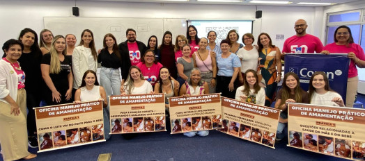 Enfermagem em SC qualifica manejo da amamentação com oficinas práticas. Evento foca em pega, retirada manual e traumas, visando cuidado materno-infantil.